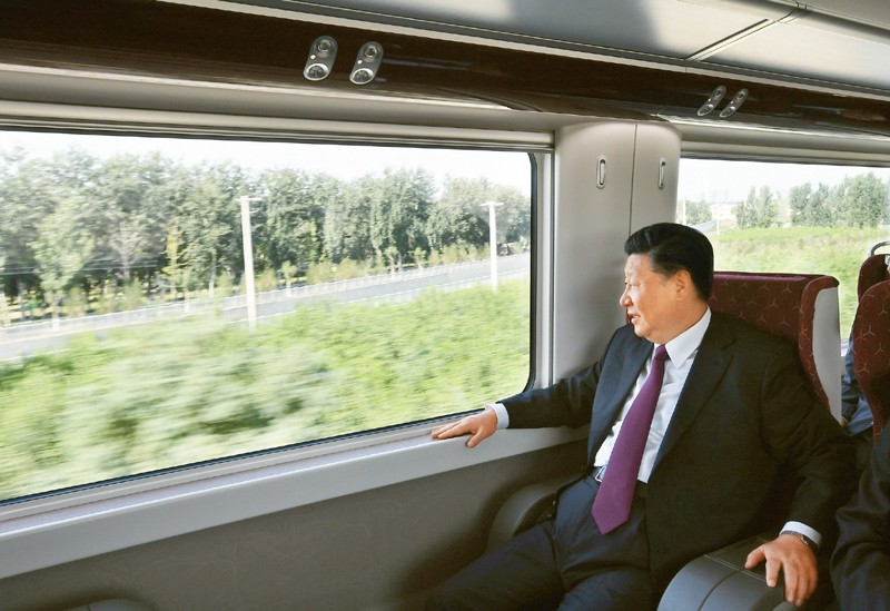 2019年9月25日上午,北京大興國(guó)際機(jī)場(chǎng)投運(yùn)儀式在北京舉行。中共中央總書記、國(guó)家主席、中央軍委主席習(xí)近平出席儀式,宣布機(jī)場(chǎng)正式投運(yùn)并巡覽航站樓。這是習(xí)近平乘坐軌道列車前往北京大興國(guó)際機(jī)場(chǎng)。 新華社記者 謝環(huán)馳/攝
