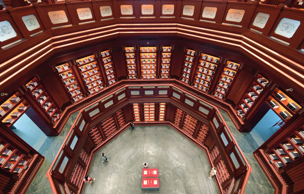 觀眾在中國(guó)國(guó)家版本館中央總館文瀚廳內(nèi)參觀(資料照片) 李賀攝/本刊