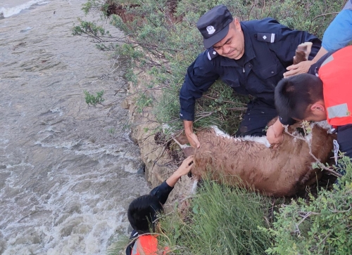 6月5日,新疆阿勒泰邊境管理支隊(duì)沖乎爾邊境派出所接到牧民報(bào)警稱自家小牛不慎掉下河崖,請(qǐng)求派出所協(xié)助救援。接到報(bào)警電話后,派出所立即組織4名民警趕赴現(xiàn)場(chǎng),身綁救援繩下河崖施救,經(jīng)過(guò)近1個(gè)小時(shí)的救援,在民警和現(xiàn)場(chǎng)群眾的協(xié)同配合下,成功將小牛營(yíng)救上岸,為牧民群眾挽回經(jīng)濟(jì)損失。