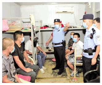 圖為8月21日夜,民警對(duì)市區(qū)上游常莊水庫周圍居民進(jìn)行勸說轉(zhuǎn)移。