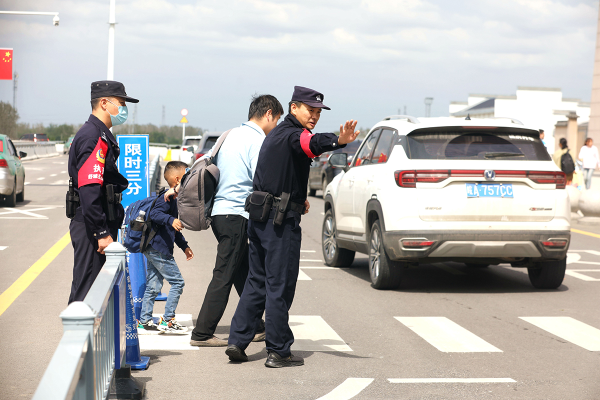 10月6日,安徽省舒城縣公安局千人橋派出所舒城高鐵東站警務(wù)站民輔警在疏導(dǎo)交通、服務(wù)旅客出行。當(dāng)天是中秋國慶假期最后一天,迎來返程旅客高峰。警務(wù)站全員上崗,及時(shí)做好車流、旅客引導(dǎo),確保旅客返程平安。