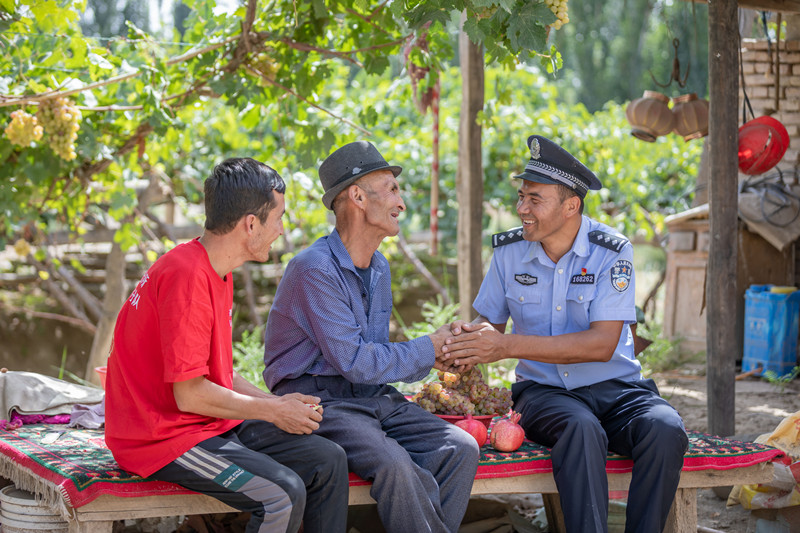 連日來,新疆維吾爾自治區(qū)葉城縣公安局積極組織民輔警走進田間地頭,在幫助群眾干農活的同時開展反詐宣傳,向群眾講解反詐知識,提醒群眾提高安全防范意識。