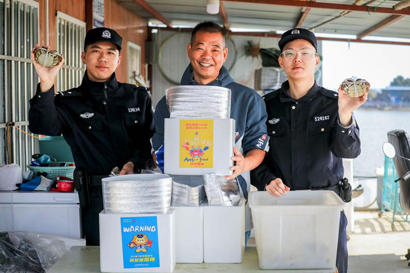 正值大閘蟹上市旺季,江蘇省興化市公安局近日精心設計反詐貼紙開展反詐宣傳。