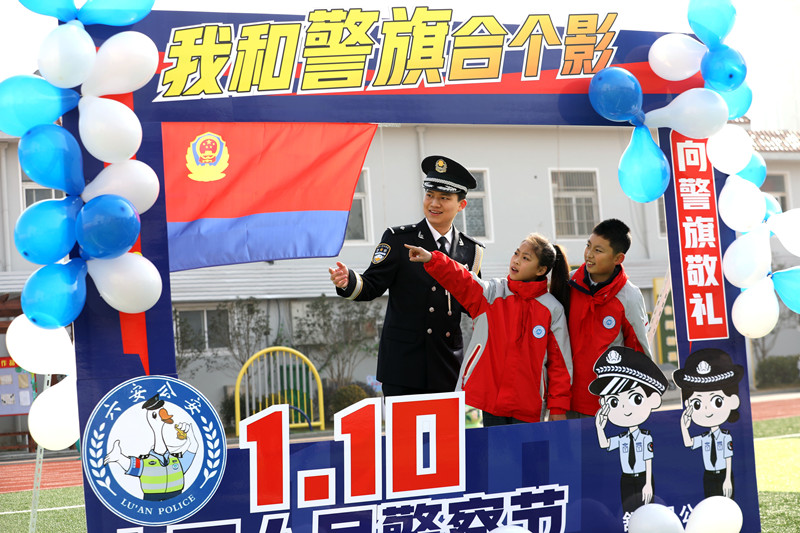 1月3日,安徽省舒城縣公安局民警來到城關(guān)鎮(zhèn)第二小學(xué)龍舒路校區(qū),與學(xué)校師生共迎第四個中國人民警察節(jié),開展“我與警旗合影”、警用裝備展、110知識競答等活動。