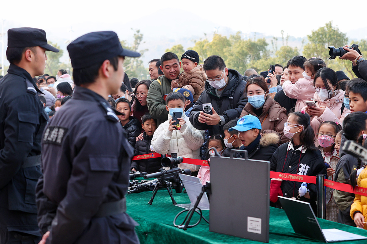 為迎接即將到來的第四個中國人民警察節(jié), 1月7日,浙江省舟山市公安局在市綜合警務(wù)訓(xùn)練基地舉行警營開放日活動,市民現(xiàn)場零距離體驗(yàn)警務(wù)裝備、觀看警用無人機(jī)、警用摩托車、重裝防爆小隊技戰(zhàn)術(shù)等科目表演,增強(qiáng)市民對公安工作的理解和支持,營造警民一家親的和諧氛圍。