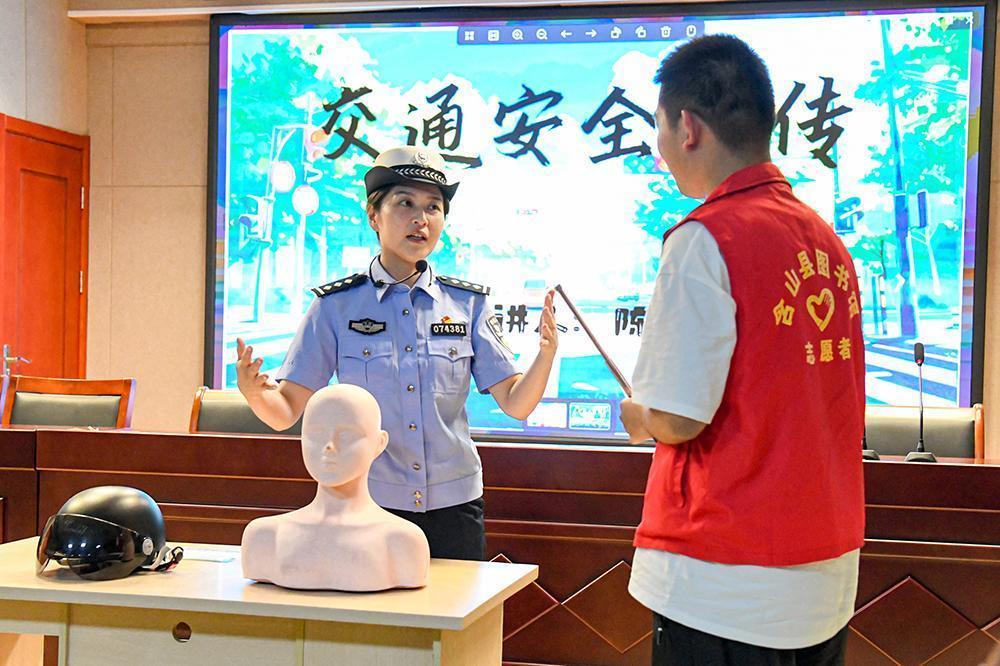 7月25日,安徽省馬鞍山市含山縣公安局交管大隊(duì)在縣圖書(shū)館開(kāi)展“文明交通 你我同行”主題宣傳活動(dòng),為新加入的交通安全志愿者們上交通安全課,營(yíng)造良好夏季道路交通秩序,預(yù)防和減少道路交通事故的發(fā)生。