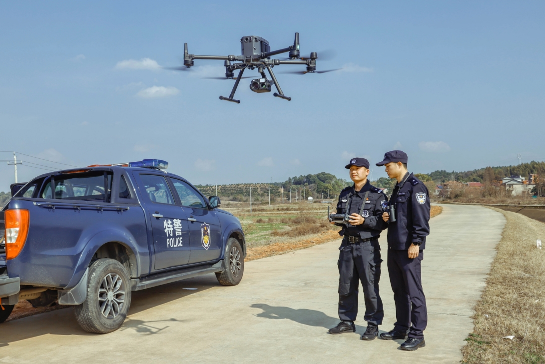 圖為民警利用警用無(wú)人機(jī)開(kāi)展空中巡查。