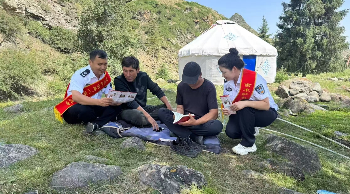 7月14日,新疆吉木薩爾縣司法局“馬背普法隊(duì)”成員騎馬來到草原深處的牧業(yè)點(diǎn)開展普法宣傳活動。司法局干警將法條編成牧民熟悉的諺語,將案例融入日常聊天,在轉(zhuǎn)場路上設(shè)立“移動普法站”,在牧場開設(shè)“氈房法律課堂”,讓尊法學(xué)法守法用法的種子在每一片草原、每一戶牧民心中生根發(fā)芽。