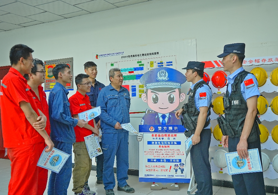 新疆出入境邊防檢查總站昌吉邊境管理支隊(duì)老君廟邊境派出所轄區(qū)有多家風(fēng)電企業(yè),這里全年7級(jí)以上大風(fēng)天氣多達(dá)240余天,“風(fēng)警”成為了轄區(qū)群眾對(duì)派出所民警最常用的稱呼。8月6日,派出所民警聯(lián)合轄區(qū)風(fēng)電企業(yè)安全員逆風(fēng)而行,對(duì)風(fēng)電場(chǎng)區(qū)設(shè)備運(yùn)行安全隱患進(jìn)行排查,并對(duì)風(fēng)電企業(yè)員工開(kāi)展防范電信網(wǎng)絡(luò)詐騙宣傳,提升企業(yè)員工防詐反詐意識(shí),助力企業(yè)安全生產(chǎn)。
