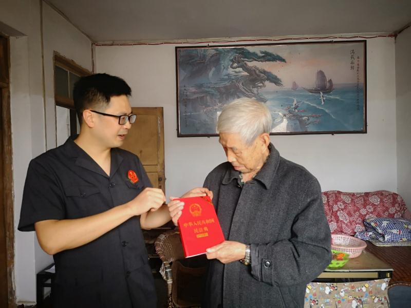 鑒于2021年1月1日即將施行的《民法典》合同編與現(xiàn)行合同法相比存在部分變化,為便于黃老更進一步了解即將施行的民法典合同編內(nèi)容,大觀法庭決定將《民法典》送給黃老??紤]到黃老年歲已大,行動不便,法庭干警親自上門將民法典送到了黃老手里,劉小彬還為黃老講述《民法典》中的亮點內(nèi)容及合同編的變化,并解答黃老及家屬關(guān)于法律問題的咨詢。