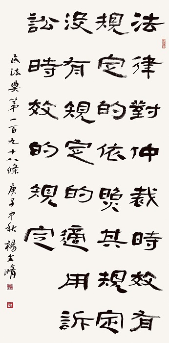 “書·法”活動(dòng)以書寫《中華人民共和國民法典》法條開筆,未來將對準(zhǔn)更多的法律。