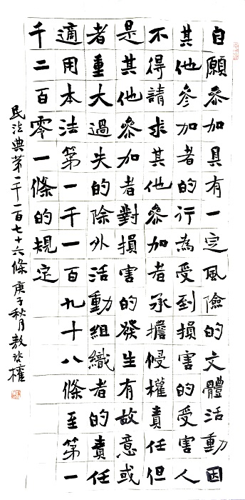 “書·法”活動(dòng)以書寫《中華人民共和國民法典》法條開筆,未來將對準(zhǔn)更多的法律。
