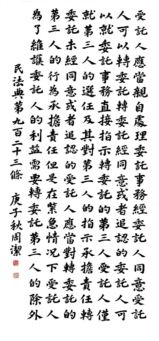 民法典第九百二十三條 受托人應(yīng)當(dāng)親自處理委托事務(wù)。經(jīng)委托人同意,受托人可以轉(zhuǎn)委托。轉(zhuǎn)委托經(jīng)同意或者追認(rèn)的,委托人可以就委托事務(wù)直接指示轉(zhuǎn)委托的第三人,受托人僅就第三人的選任及其對(duì)第三人的指示承擔(dān)責(zé)任。轉(zhuǎn)委托未經(jīng)同意或者追認(rèn)的,受托人應(yīng)當(dāng)對(duì)轉(zhuǎn)委托的第三人的行為承擔(dān)責(zé)任;但是,在緊急情況下受托人為了維護(hù)委托人的利益需要轉(zhuǎn)委托第三人的除外。