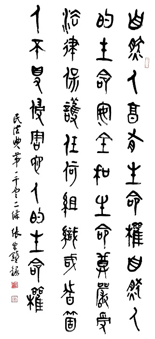 民法典第一千零二條 自然人享有生命權。自然人的生命安全和生命尊嚴受法律保護。任何組織或者個人不得侵害他人的生命權。
