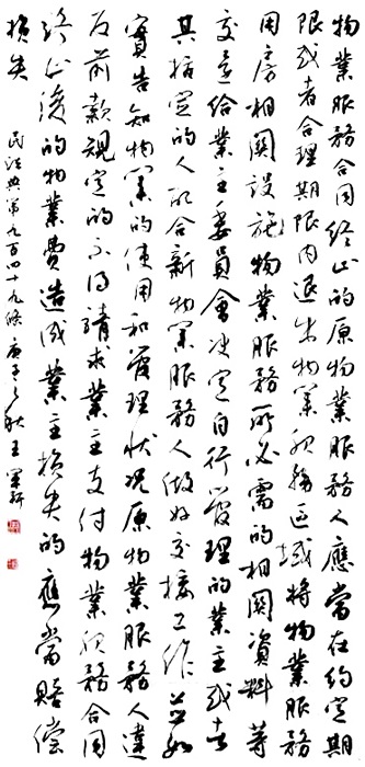 民法典第九百四十九條 物業(yè)服務(wù)合同終止的,原物業(yè)服務(wù)人應(yīng)當(dāng)在約定期限或者合理期限內(nèi)退出物業(yè)服務(wù)區(qū)域,將物業(yè)服務(wù)用房、相關(guān)設(shè)施、物業(yè)服務(wù)所必需的相關(guān)資料等交還給業(yè)主委員會(huì)、決定自行管理的業(yè)主或者其指定的人,配合新物業(yè)服務(wù)人做好交接工作,并如實(shí)告知物業(yè)的使用和管理狀況。