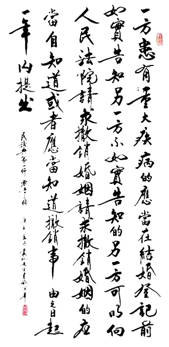 民法典第一千零五十三條 一方患有重大疾病的,應(yīng)當(dāng)在結(jié)婚登記前如實(shí)告知另一方;不如實(shí)告知的,另一方可以向人民法院請求撤銷婚姻。