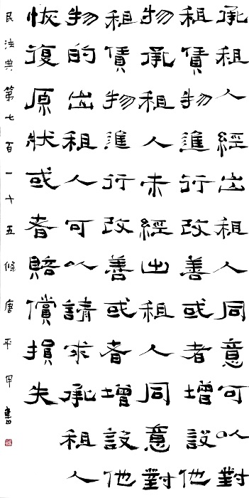 唐平甲,中國書法家協(xié)會會員,中國楹聯(lián)學(xué)會會員,北京中韓書畫家聯(lián)誼會理事,中國國畫家協(xié)會會員。 作品入展全國首屆書法臨帖作品展等,獲第二屆全國章草書法大賽二等獎等。