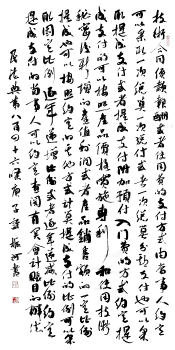 民法典第八百四十六條 技術(shù)合同價(jià)款、報(bào)酬或者使用費(fèi)的支付方式由當(dāng)事人約定,可以采取一次總算、一次總付或者一次總算、分期支付,也可以采取提成支付或者提成支付附加預(yù)付入門費(fèi)的方式。