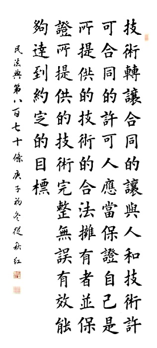民法典第八百七十條 技術(shù)轉(zhuǎn)讓合同的讓與人和技術(shù)許可合同的許可人應(yīng)當(dāng)保證自己是所提供的技術(shù)的合法擁有者,并保證所提供的技術(shù)完整、無誤、有效,能夠達到約定的目標(biāo)。
