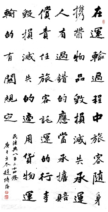 民法典第八百二十四條 在運(yùn)輸過(guò)程中旅客隨身攜帶物品毀損、滅失,承運(yùn)人有過(guò)錯(cuò)的,應(yīng)當(dāng)承擔(dān)賠償責(zé)任。