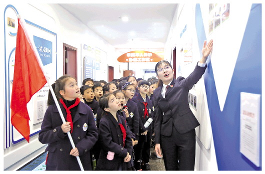 圖為嘉興秀洲實驗小學(xué)學(xué)生參觀嘉興市人民檢察院未成年人保護(hù)辦案工作區(qū)。 法治日報通訊員 鐘華 攝