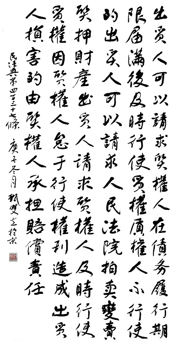 “書·法”活動(dòng)以書寫《中華人民共和國民法典》法條開筆,未來將對(duì)準(zhǔn)更多的法律。