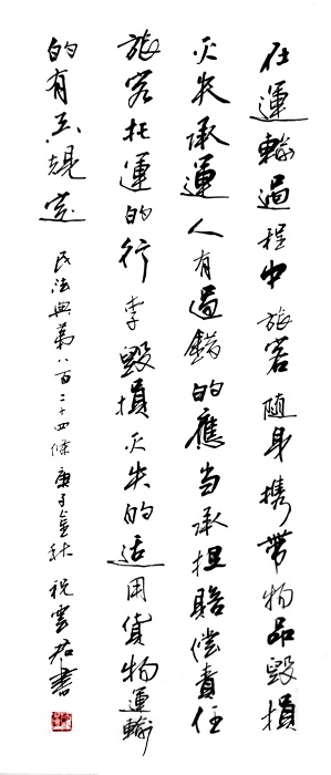 民法典第八百二十四條 在運(yùn)輸過(guò)程中旅客隨身攜帶物品毀損、滅失,承運(yùn)人有過(guò)錯(cuò)的,應(yīng)當(dāng)承擔(dān)賠償責(zé)任。