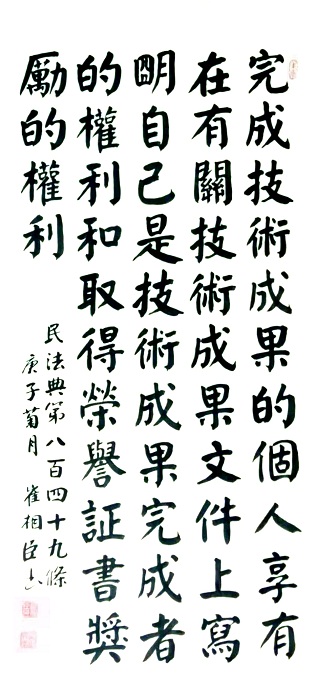 民法典第八百四十九條 完成技術成果的個人享有在有關技術成果文件上寫明自己是技術成果完成者的權利和取得榮譽證書、獎勵的權利。