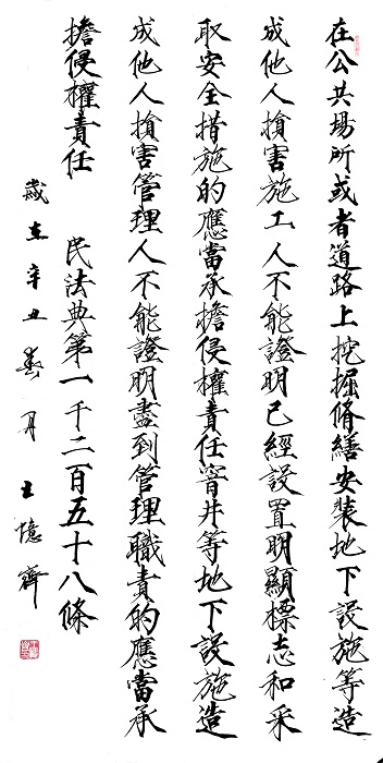 民法典第一千二百五十八條 在公共場所或者道路上挖掘、修繕安裝地下設施等造成他人損害,施工人不能證明已經設置明顯標志和采取安全措施的,應當承擔侵權責任。