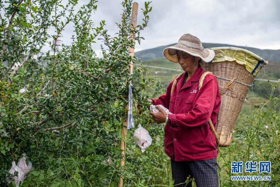 在云南省會(huì)澤縣娜姑鎮(zhèn)干海子村,干海子種植專業(yè)合作社的負(fù)責(zé)人莊錘兵正在地里管護(hù)石榴樹(shù)。