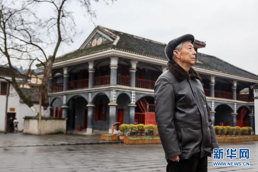 1月27日,83歲的遵義會議紀(jì)念館原副館長田興詠在遵義會議會址前口述歷史。新華社記者 歐東衢 攝