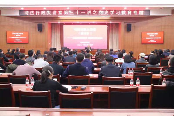 省司法廳機關(guān)全體黨員干部、監(jiān)獄管理局和戒毒管理局機關(guān)部分黨員代表參加專題講座會。
