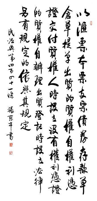 民法典第四百四十一條 以匯票、本票、支票、債券、存款單、倉單、提單出質(zhì)的,質(zhì)權(quán)自權(quán)利憑證交付質(zhì)權(quán)人時設(shè)立;沒有權(quán)利憑證的,質(zhì)權(quán)自辦理出質(zhì)登記時設(shè)立。法律另有規(guī)定的,依照其規(guī)定。