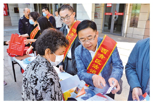 圖為天津市西青區(qū)司法局“法律服務輕騎兵”向群眾介紹便民聯系卡。法治日報通訊員 張鵬 攝