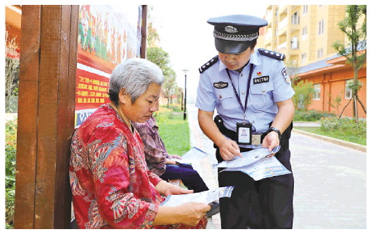 圖為修文縣公安局黨員民警向群眾宣傳安全知識。 吳觀石 攝