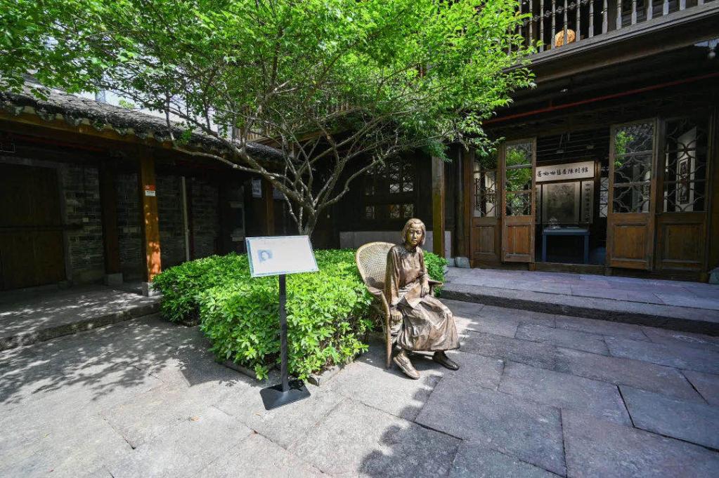 江南初夏,大樹蔭蔽之下,老宅里一小片黃花蒿在淅淅瀝瀝的梅雨滋潤(rùn)下愈發(fā)青翠,黃花蒿旁的少女雕像眼帶笑意,仿佛與來往的游人述說著她與黃花蒿間奇妙的故事。