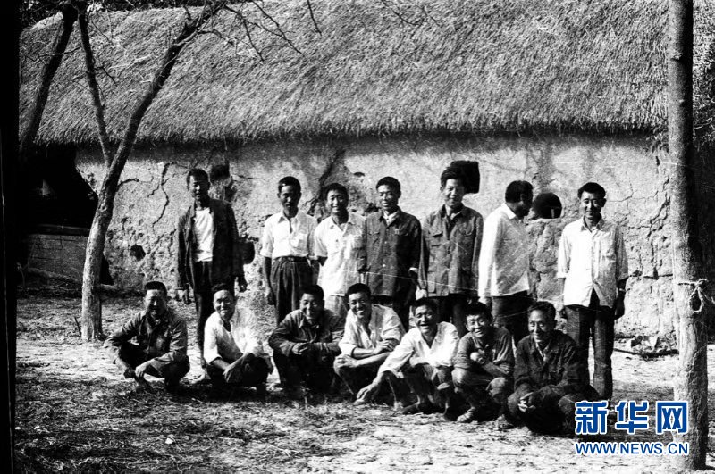 1981年,部分“大包干”帶頭人在茅草屋農(nóng)舍前合影(資料照片)。小崗,這個被寫在歷史教科書上的村莊,迎來又一年的豐收。如今的場景讓人難以想象:40多年前,這是一個吃糧靠返銷、用錢靠救濟、生產(chǎn)靠貸款的“三靠村”。山鄉(xiāng)巨變,要從當年18位莊稼漢的“紅手印”說起。新華社發(fā)