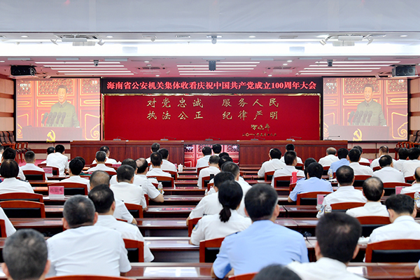 奮斗百年路,啟航新征程。7月1日上午8時,慶祝中國共產(chǎn)黨成立100周年大會在北京天安門廣場隆重舉行。海南省公安機關(guān)在做好各項安保任務(wù)的同時,組織民警集中收聽收看大會盛況。副省長、公安廳黨委書記、廳長閆希軍在省公安廳主會場收聽收看大會實況。