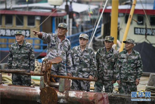 在海南省瓊海市潭門鎮(zhèn),潭門海上民兵連副連長王書茂(左二)在組織民兵開展訓練任務(2018年12月10日攝)。新華社發(fā)(宋國強 攝)