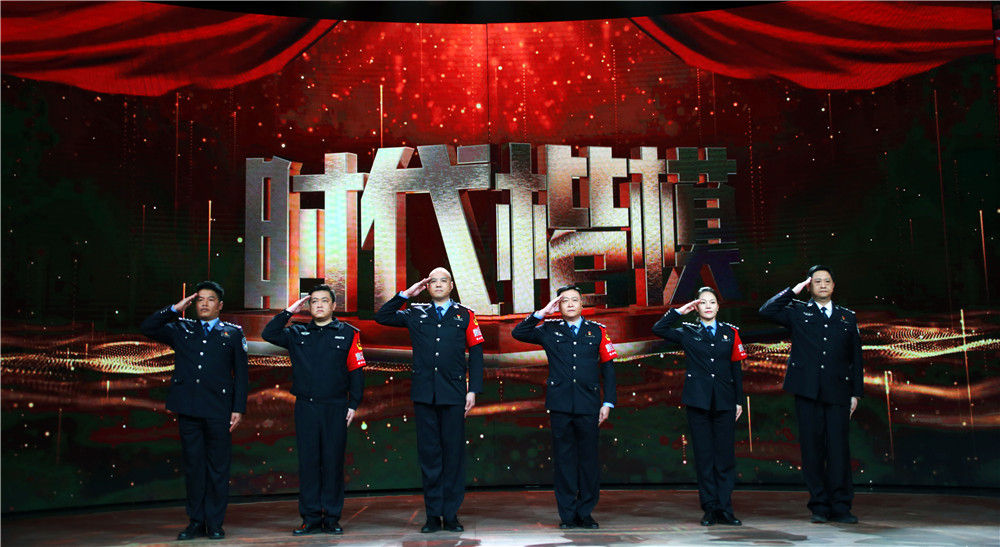 福建省“漳州110”成員代表在“時(shí)代楷模”發(fā)布儀式上敬禮(1月4日攝)。“漳州110”是人民群眾對(duì)福建省漳州市公安局巡特警支隊(duì)直屬大隊(duì)的簡(jiǎn)稱。自1990年8月成立以來(lái),這個(gè)代號(hào)守護(hù)了當(dāng)?shù)匕傩?0余年。新華社記者 潘旭 攝