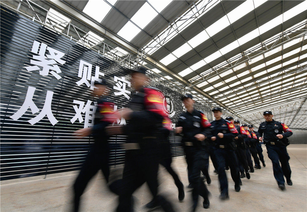 “漳州110”民警們?cè)谟?xùn)練基地進(jìn)行基礎(chǔ)體能訓(xùn)練(1月7日攝)。“漳州110”是人民群眾對(duì)福建省漳州市公安局巡特警支隊(duì)直屬大隊(duì)的簡(jiǎn)稱。自1990年8月成立以來(lái),這個(gè)代號(hào)守護(hù)了當(dāng)?shù)匕傩?0余年。新華社記者 魏培全 攝