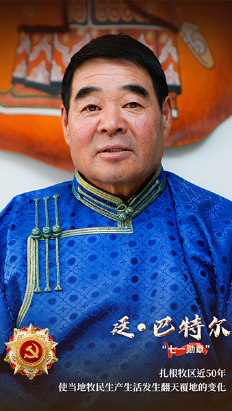 66歲的廷·巴特爾跟草原和牧民打了大半輩子交道。上周,他在人民大會(huì)堂金色大廳領(lǐng)獎(jiǎng)臺,戴上了代表黨內(nèi)最高榮譽(yù)的“七一勛章”。