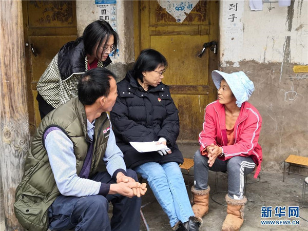 2月9日,張桂梅(右二)在家訪時(shí)與學(xué)生家長(zhǎng)交談。新華社發(fā)(王秀麗 攝)