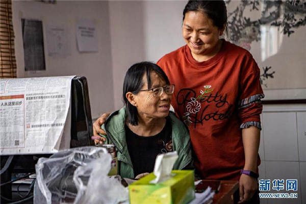 3月25日,在華坪兒童福利院長(zhǎng)大的雷秋鳳(右)來探望張桂梅。新華社記者 江文耀 攝