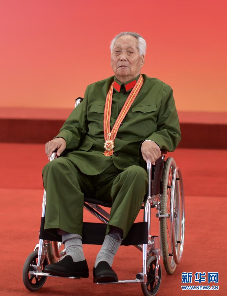 2021年6月29日,101歲的郭瑞祥身著綠軍裝,坐在輪椅上接受了習近平總書記親自授予的“七一勛章”。