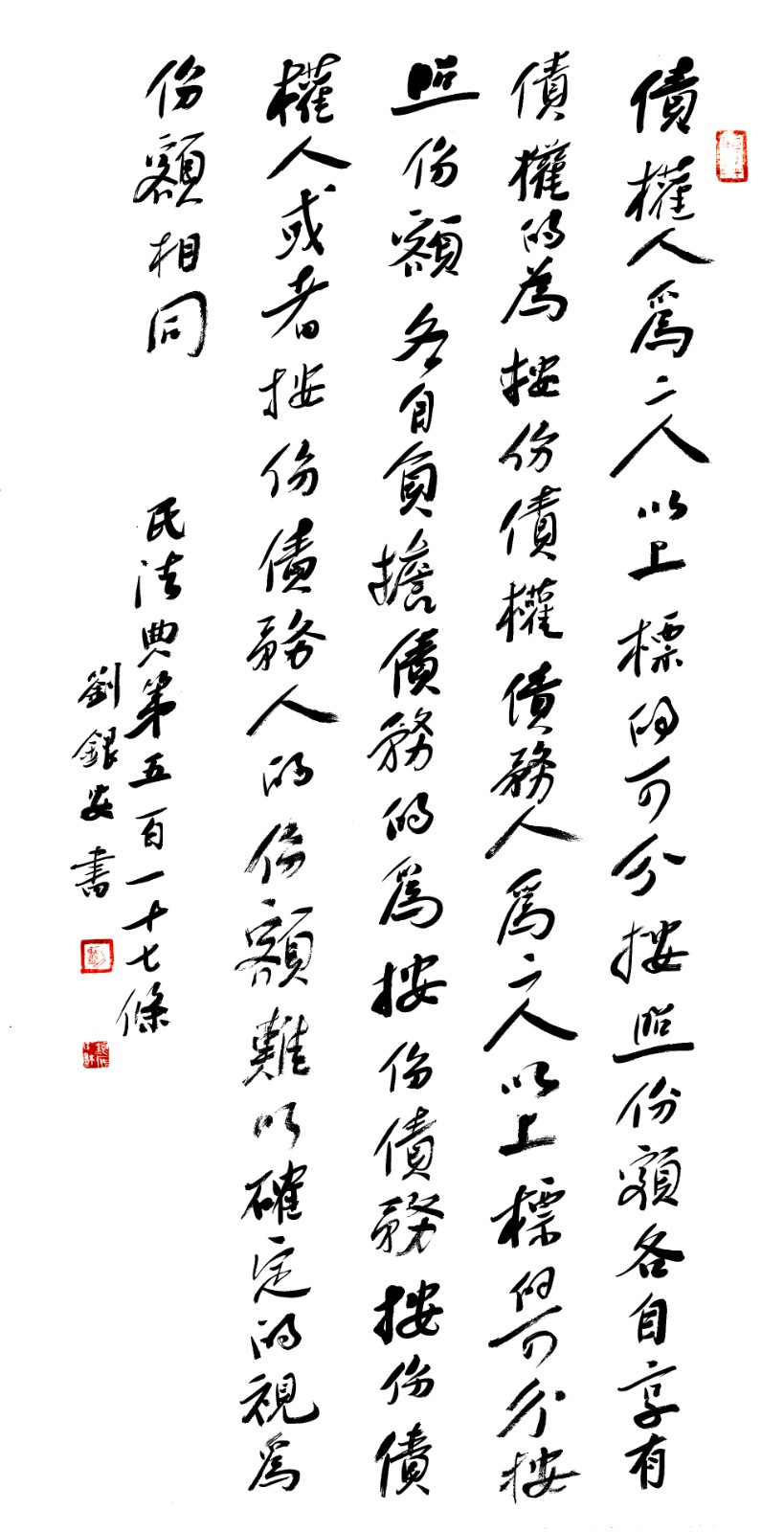 民法典第五百一十七條 債權(quán)人為二人以上,標(biāo)的可分,按照份額各自享有債權(quán)的,為按份債權(quán);債務(wù)人為二人以上,標(biāo)的可分,按照份額各自負擔(dān)債務(wù)的,為按份債務(wù)。