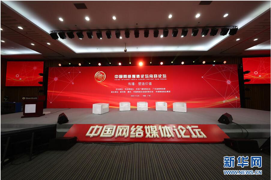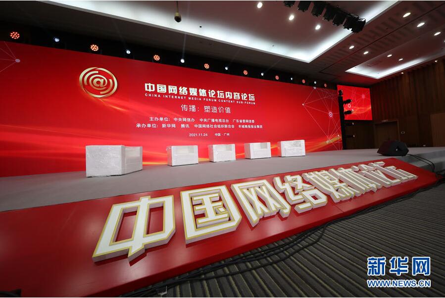 2021中國網(wǎng)絡(luò)媒體論壇于11月24日至25日在廣州舉辦。各界嘉賓圍繞“發(fā)展與秩序·讓大流量澎湃正能量”這一主題開展探討和交流。圖為論壇現(xiàn)場(chǎng)。 新華網(wǎng) 陳杰 攝