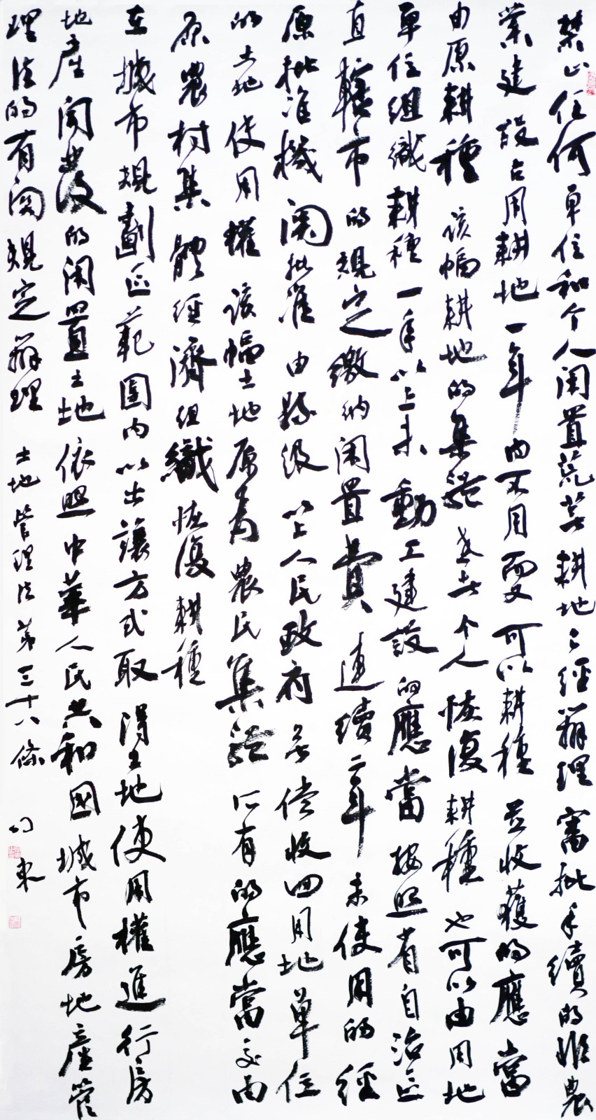 繼1600余位書法家參與書寫《中華人民共和國(guó)民法典》全部1260條法條之后,法治日?qǐng)?bào)社聯(lián)合自然資源部法規(guī)司、自然資源部書畫研究會(huì)和北京昌平書法家協(xié)會(huì),將筆端對(duì)準(zhǔn)土地管理“一法一條例”,即《中華人民共和國(guó)土地管理法》和《中華人民共和國(guó)土地管理法實(shí)施條例》。
