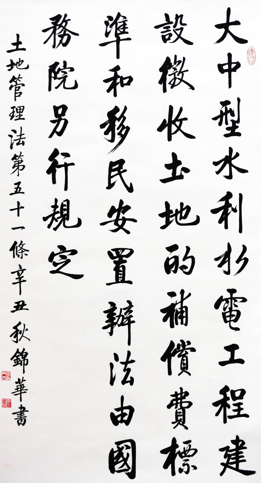 繼1600余位書法家參與書寫《中華人民共和國民法典》全部1260條法條之后,法治日報社聯合自然資源部法規(guī)司、自然資源部書畫研究會和北京昌平書法家協(xié)會,將筆端對準土地管理“一法一條例”,即《中華人民共和國土地管理法》和《中華人民共和國土地管理法實施條例》。