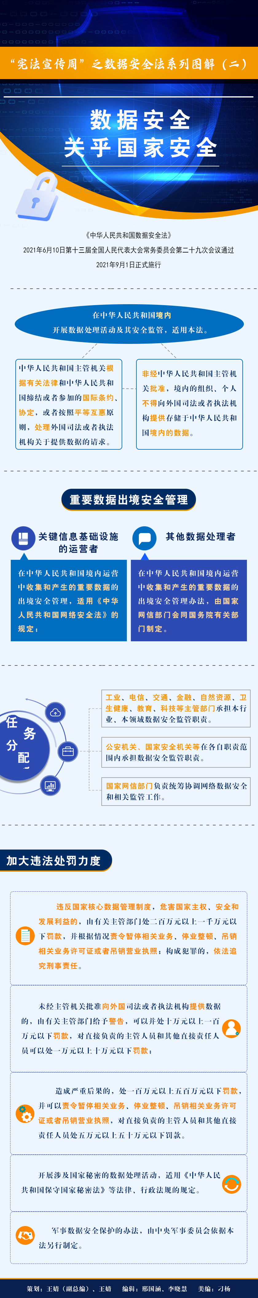 值此第四個(gè)“憲法宣傳周”之際,法治網(wǎng)將為您解讀今年9月1日起施行的《中華人民共和國數(shù)據(jù)安全法》——這部法律的亮點(diǎn)是什么?它是如何支持促進(jìn)數(shù)據(jù)安全與發(fā)展的?它又彰顯了哪些數(shù)據(jù)“溫度”?這一系列問題,都會在法治網(wǎng)《數(shù)據(jù)安全法圖解(系列)》中找到答案。